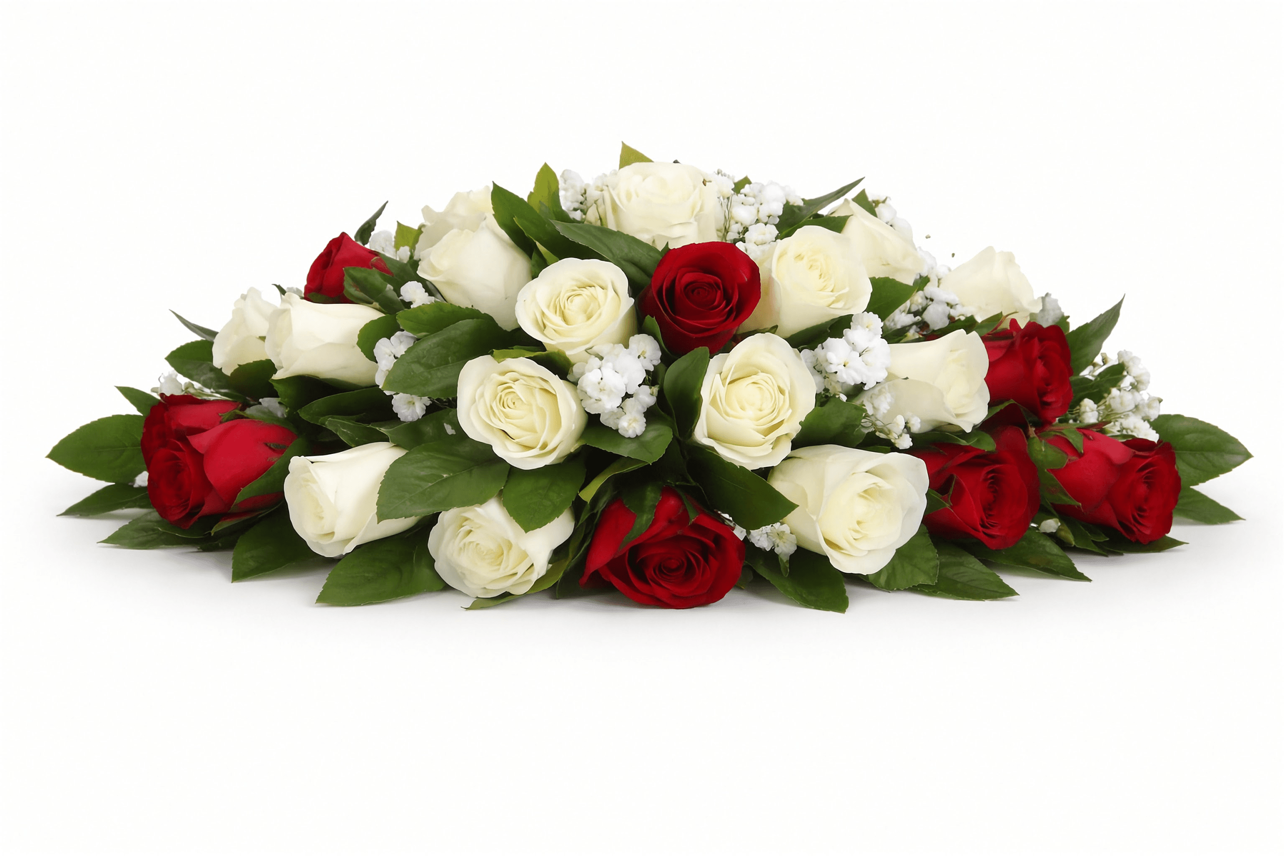 Looking for office flower delivery in Nairobi? Our Executive Boardroom Arrangements Centerpiece features premium red and white roses styled with fresh greenery to create a sophisticated, corporate-ready floral display.