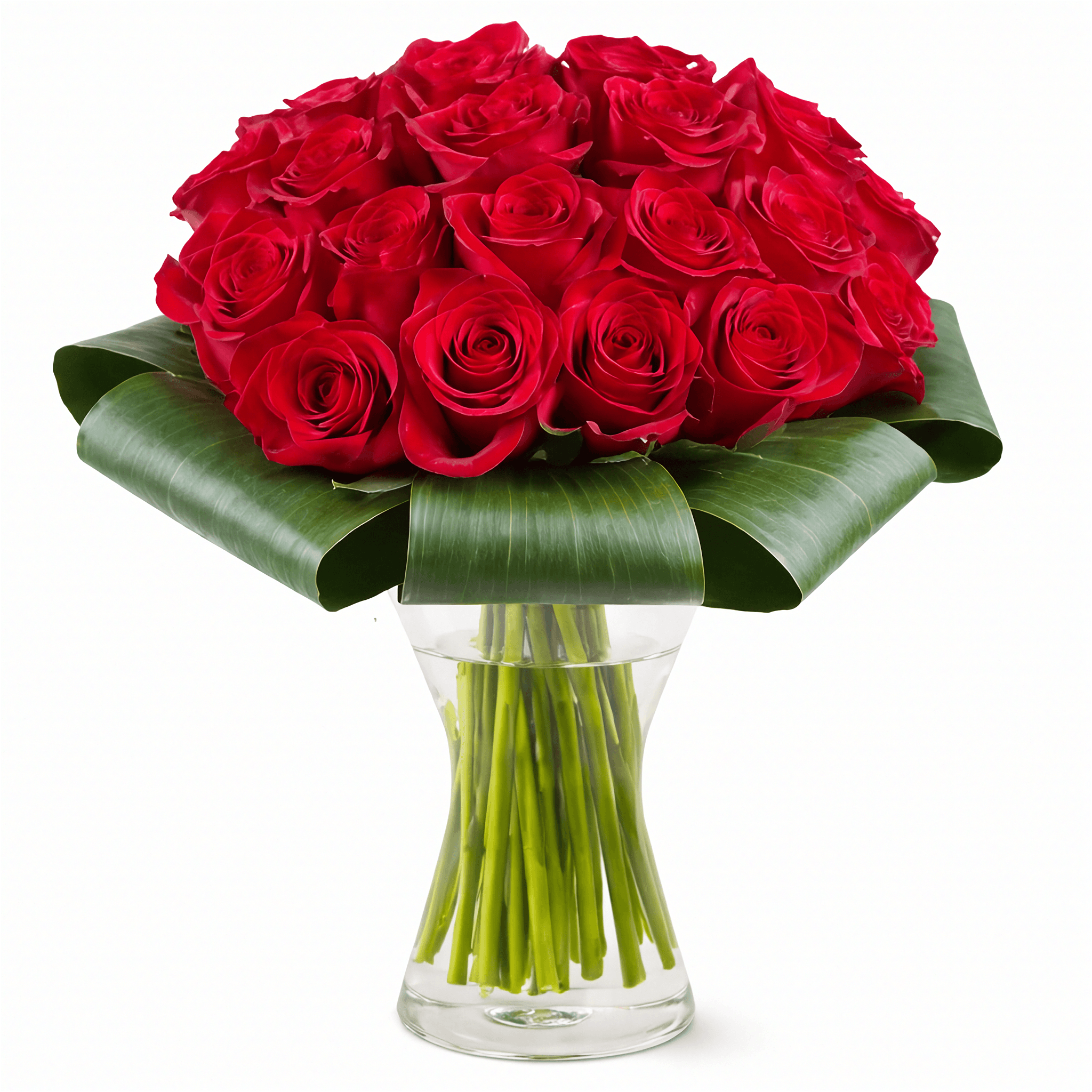 Make a bold romantic statement with the Dreamland Vase Red Roses bouquet, a luxurious arrangement of two dozen (24) fresh red roses beautifully styled with lush greenery in an elegant glass vase. Designed by expert florists at Nectar Flower Shop Nairobi, this bouquet symbolizes deep love, passion, and timeless romance.