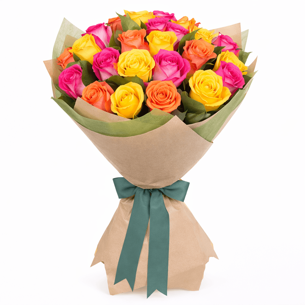 - 36 premium fresh mixed roses (pink, yellow & orange)