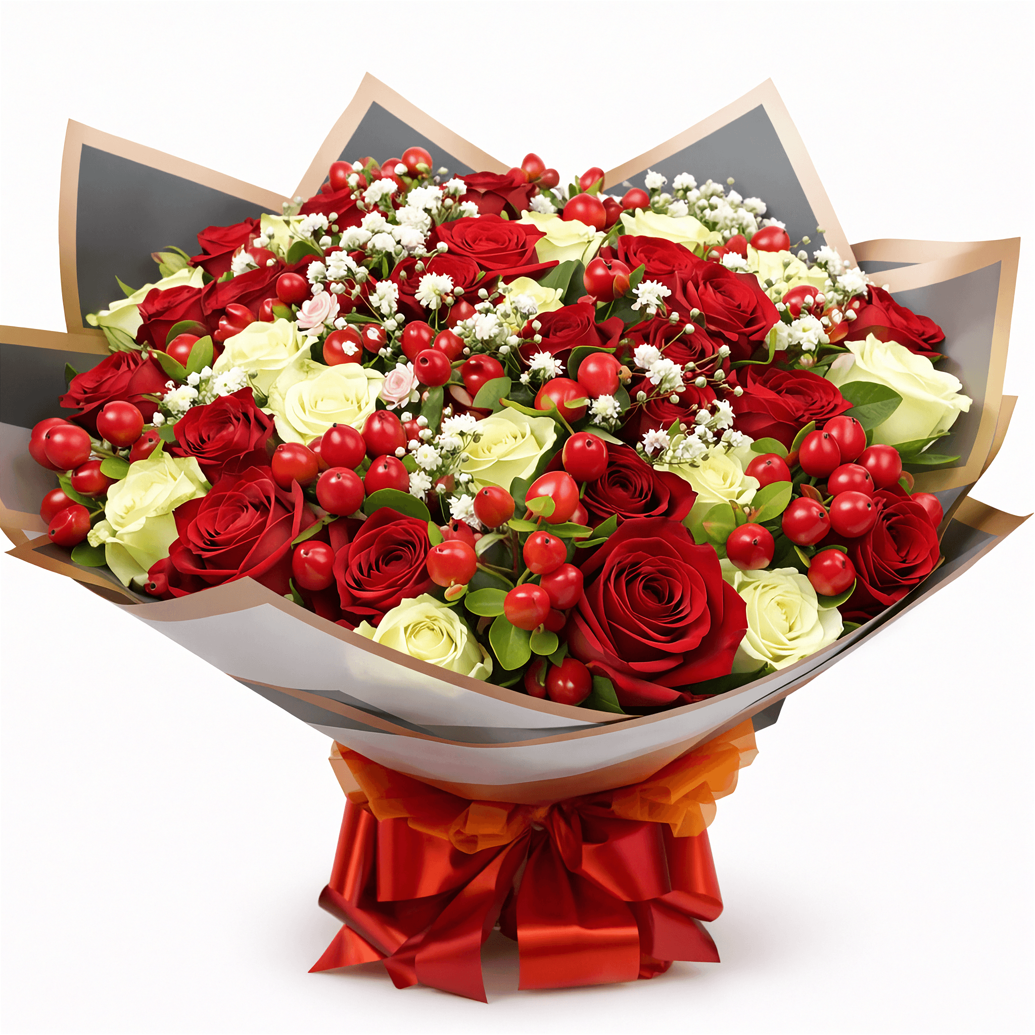 Red roses symbolize deep love and passion, while white roses represent purity and new beginnings. Together, they form a harmonious bouquet that speaks directly to the heart—perfect for expressing love, admiration, and meaningful emotions.